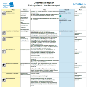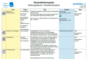 schülke verfügt über mehr als 130 Jahre Erfahrung im Bereich der Desinfektion und ist ein verlässlicher Partner für die Entwicklung und Bereitstellung von Hygienelösungen. Das kostenlose Tool mein hygieneplan hilft Ihnen bei der Erstellung individueller Hygienepläne im Rettungsdienst und bietet praktische PDF-Downloads. Mit anpassbaren Hygiene-Vorlagen und automatischen Updates ist mein hygieneplan besonders benutzerfreundlich.