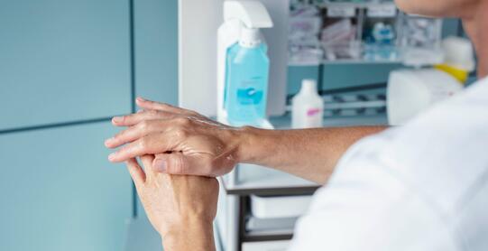 Mit bestimmten Mitteln zur Händedesinfektion werden Krankheitserreger an den Händen gezielt und zuverlässiger als beim reinen Händewaschen minimiert. Das vermeidet insbesondere nosokomiale Infektionen.
