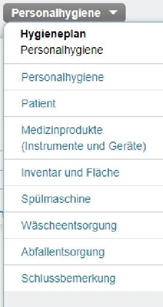 Die Pläne sind je nach Bereich in mehrere Kapitel unterteilt. Durch Aufrufen des Plans gelangen Sie immer automatisch zum Kapitel Personalhygiene. Über das Drop-down-Menü in der Navigationsleiste können Sie zwischen einzelnen Kapiteln wechseln – sie lassen sich individuell gestalten.