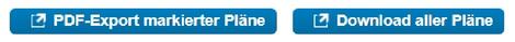 Unter „Meine Pläne“ laden Sie Einzelpläne mit Klick auf das grau hinterlegte Symbol herunter. Anhand der Befehle „Alle auswählen“ und „PDF-Export markierter Pläne“ lassen sich alle Pläne gleichzeitig als PDF exportieren – in Form einer ZIP-Datei oder extrahiert abspeichern und ausdrucken.